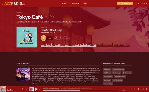 トラディショナルやクラシックはもちろん、ビッグバンド、ハード・バップ、フリージャズ、スタンダード、ジャズファンク、ボサノヴァ等、あらゆるスタイルのジャズを楽しめる選曲が特徴の無料ネットラジオサービス。