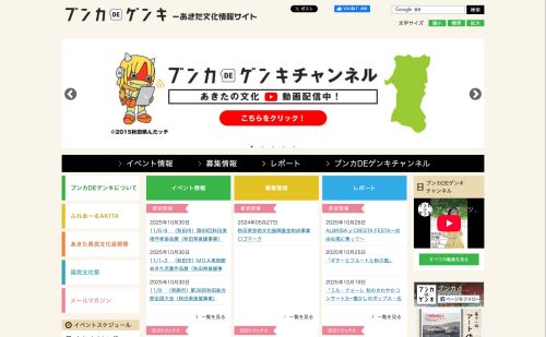 秋田県の文化情報サイト。秋田県民歌で「山水皆これ 詩の国秋田」と歌われる美しい自然と四季の変化が織りなす風土の中で育まれてきた秋田の文化を、動画やSNSを通して、広く県内外に情報発信しています。