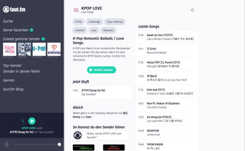 ホ・ガク「Farewell In Tears」、リン「Moonchild Ballad」、ソヒョン「LONELY LOVE」等、K-POPの中でも特にラブソングやロマンチックな楽曲を選曲している無料ネットラジオサービス。