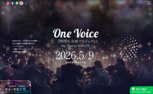 2026年5月9日、びわ湖と花火を背景に1000人の歌声が響き合う。一夜限りのライブアートステージに立つ合唱参加者を大募集しています!