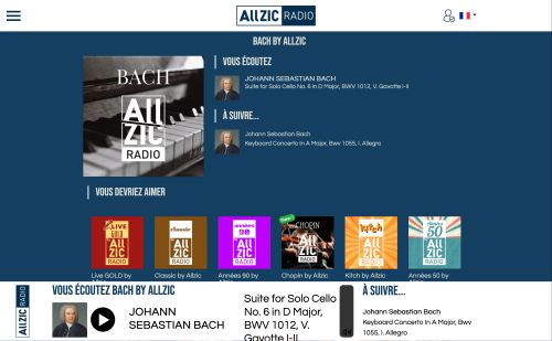 フランスのwebラジオサービスAllzic Radioによるヨハン・セバスチャン・バッハの楽曲専門チャンネル。登録不要で、バイオリン・ソナタや管弦楽曲などの名曲を高音質でストリーミングし、作業用BGMとしてもリアルタイムに曲情報を確認しながら利用できます。